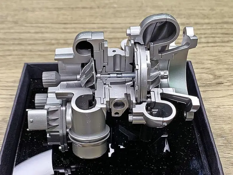 Турбокомпрессор состоит из двух основных частей: турбины и компрессора.